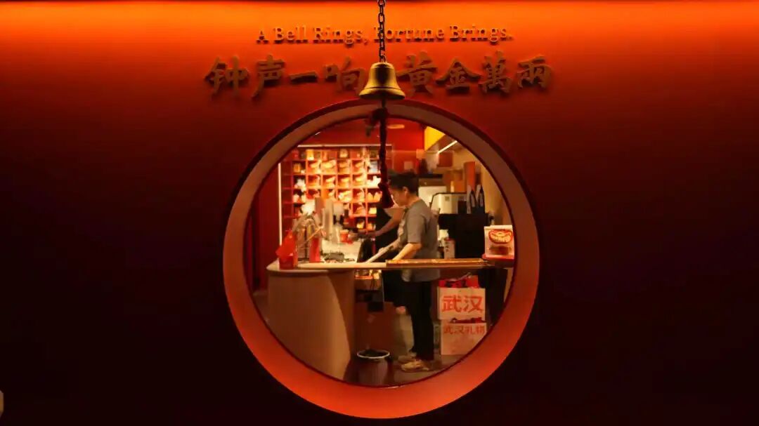 旗舰店内,全国首创的"妙境茶咖"空间尤为亮眼——游客可手持印有归元寺IP的武汉限定茶咖,倚坐红墙下,在咖啡醇香与寺庙钟声中感受"烟火气与文艺感"的双重浸润。店内转角处的巨型铜钟装置更成为新晋网红打卡点,年轻人纷纷在此拍摄"敲钟祈福"创意大片。"我们通过场景创新、IP表达与服务升维的同频共振,重构文旅消费体验。"项目负责人表示,作为汉阳区重点文旅项目,该店以"祈福文化+新中式生活"的定位,为武汉打造世界级旅游目的地提供创新样本。