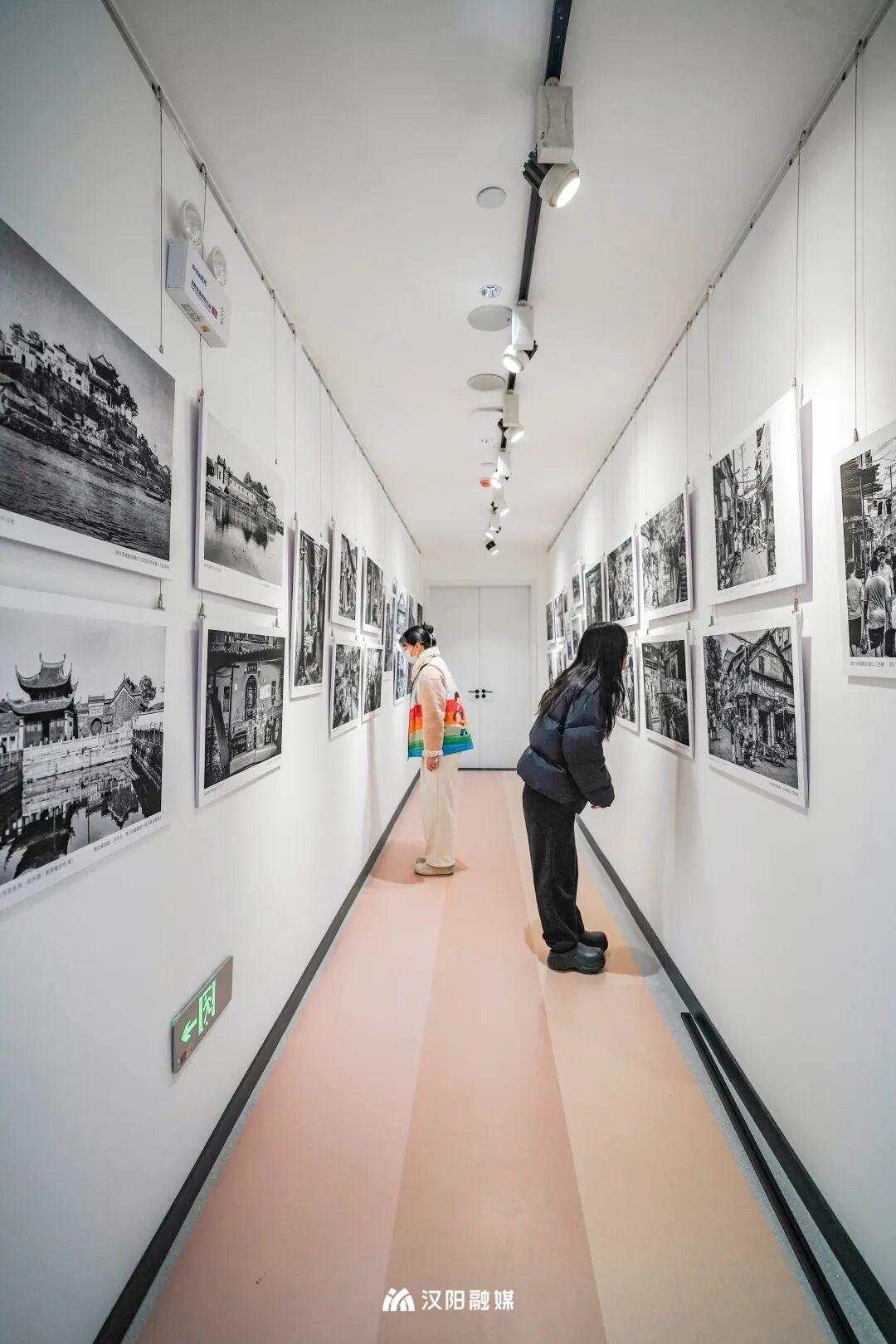 在走廊尽头,还有麻建雄摄影、收藏作品展——《汉阳新华书店的老邻居》。一幅幅黑白与彩色的影像,勾勒出晴川阁、汉阳商场、祁万顺酒楼、归元寺、西大街等充满时代印记的画面,也映照出书店与社区深深的情感连结。
