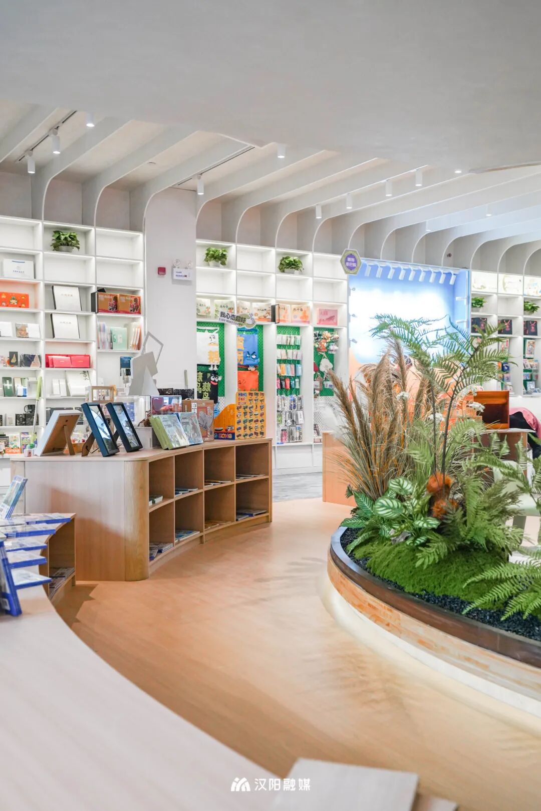 △新华书店一楼空间,以优雅、温馨的色系,营造充满汉阳传统元素的空间氛围。