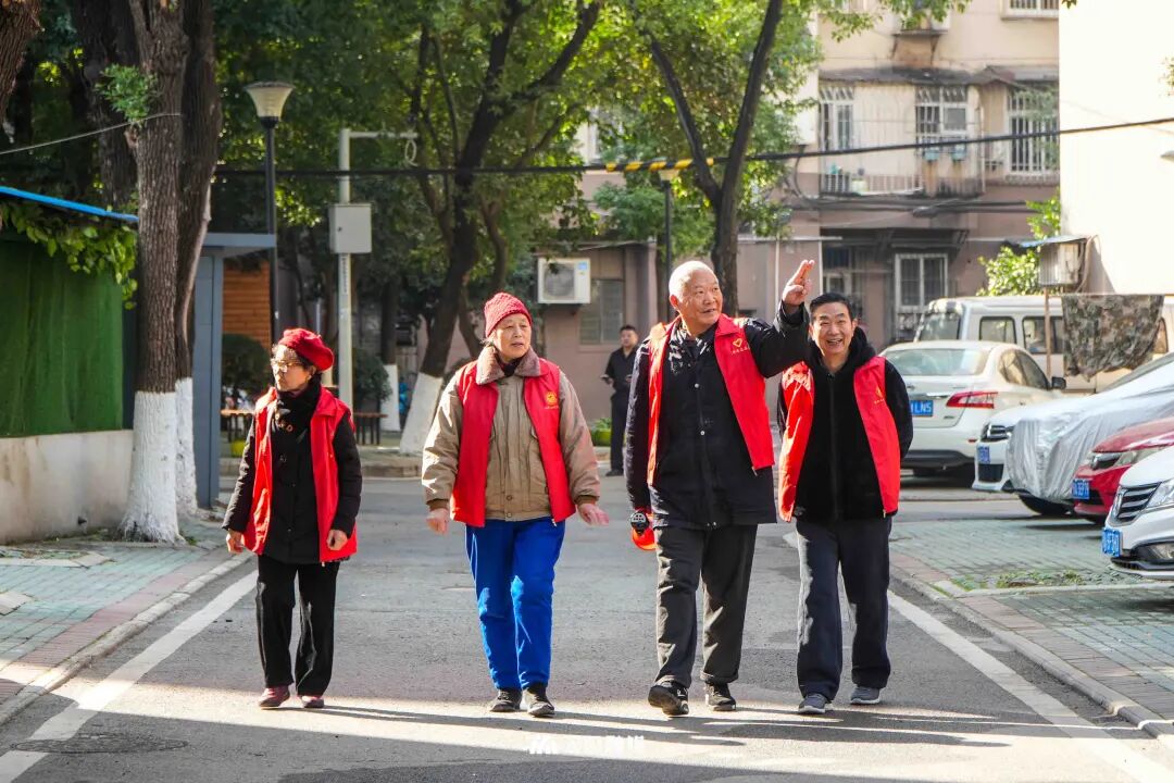 △周重书带领“红喇叭志愿服务队”在小区巡逻。