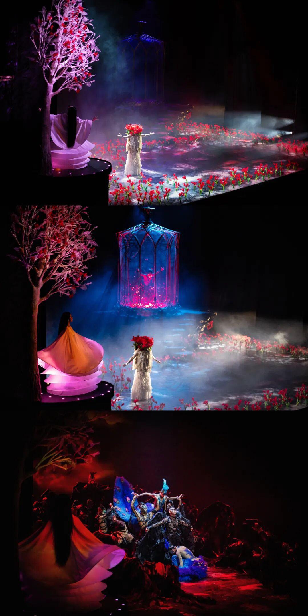 全剧以春、夏、秋、冬为序,讲述生命的成长、绽放、凋零与重生。在这部舞剧中,孔雀不再是被观赏的珍禽,而是每一个在红尘中挣扎、在爱欲中沉浮、在时间中老去的我们。它的开屏,是生命最绚烂的绽放;它的独舞,是灵魂最孤独的告白。