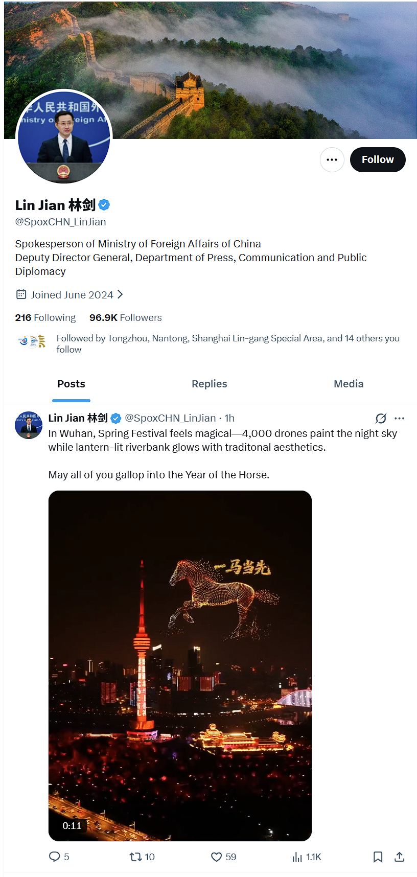视频中呈现了2月18日(大年初二)晚,以龟山电视塔为轴心,4000架无人机在夜空中展现一马当先、万马奔腾的震撼景象;2026武汉新春晴川灯会在汉阳江滩大禹神话园正式亮灯,千米江滩化身光影长卷。