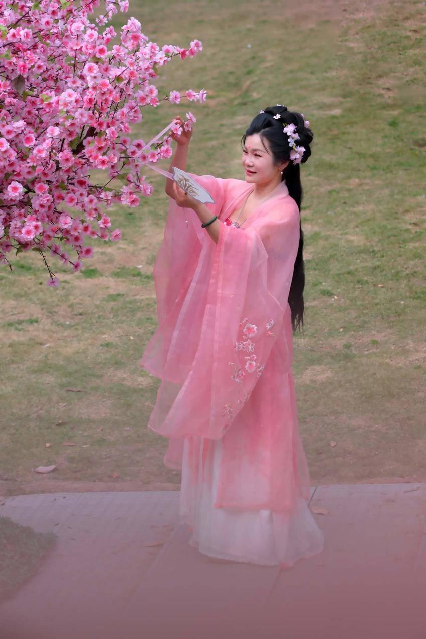 “第一次来月湖花朝节,真的被这里的花海震撼到了,菊花桃的样子特别别致,我一边赏花一边体验篆香净手,还能准点听着琴音漫步湖岸,感觉整个人都放松了。”游客李芳菲徜徉在菊花桃林,边拍照边感慨,直言这次体验超出预期,还要来月湖打卡不同的花景,更期待后续能体验到更多花卉主题的特色活动。游客李先生更是赞不绝口:“月湖的美,美在花海,更美在精致,不仅菊花桃专园很美很飒,樱花大道特别出片,海棠长廊犹如仙境,搭配湖光山色营造一步一景的观赏体验。”不少汉服爱好者表示,能在这样的花海中赶上景区的汉服体验、花朝雅集活动,沉浸式感受国风之美,是一次特别难忘的旅行。